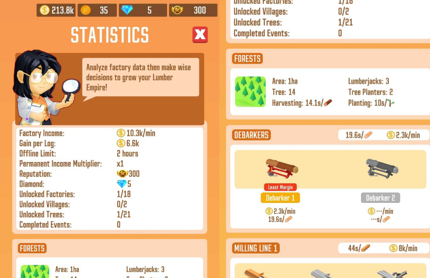 This one simulates running a lumber factory. The entire game is just clicking the “upgrade” button and waiting till you have more resources to click again. It’s a little bleak, but there’s a possibility of work feeling like a game when agents can be reliable.