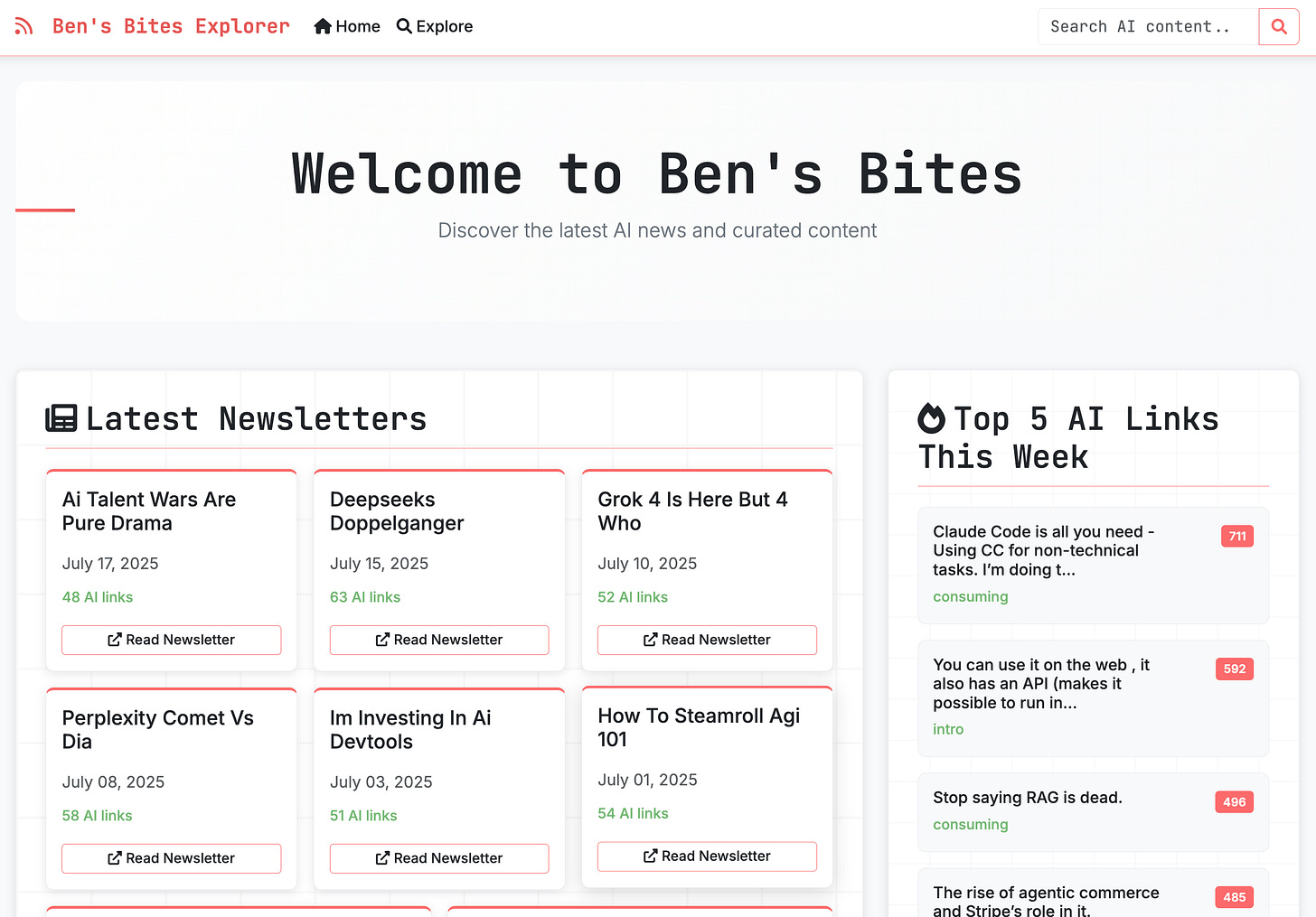 Substack doesn’t have an API, but you can see stats on the dashboard of your Substack publication (which requires you to be logged in). Keshav created a script using Stagehand that uses his local Chrome instance to read the Substack dashboard to get the stats on every link we have mentioned in the newsletter. Then another script downloads the posts from our newsletter and matches each link with the relevant text from the corresponding post. He threw that data into Replit to make a quick frontend out of it: check it here.