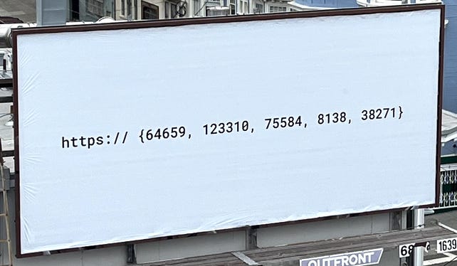 Listen Labs put up this billboard in SF. When deciphered (spoiler alert), reveals; [listen][labs][ai][/p][uzzle] — (listenlabs.ai/puzzle). A cool hiring challenge for engineers.