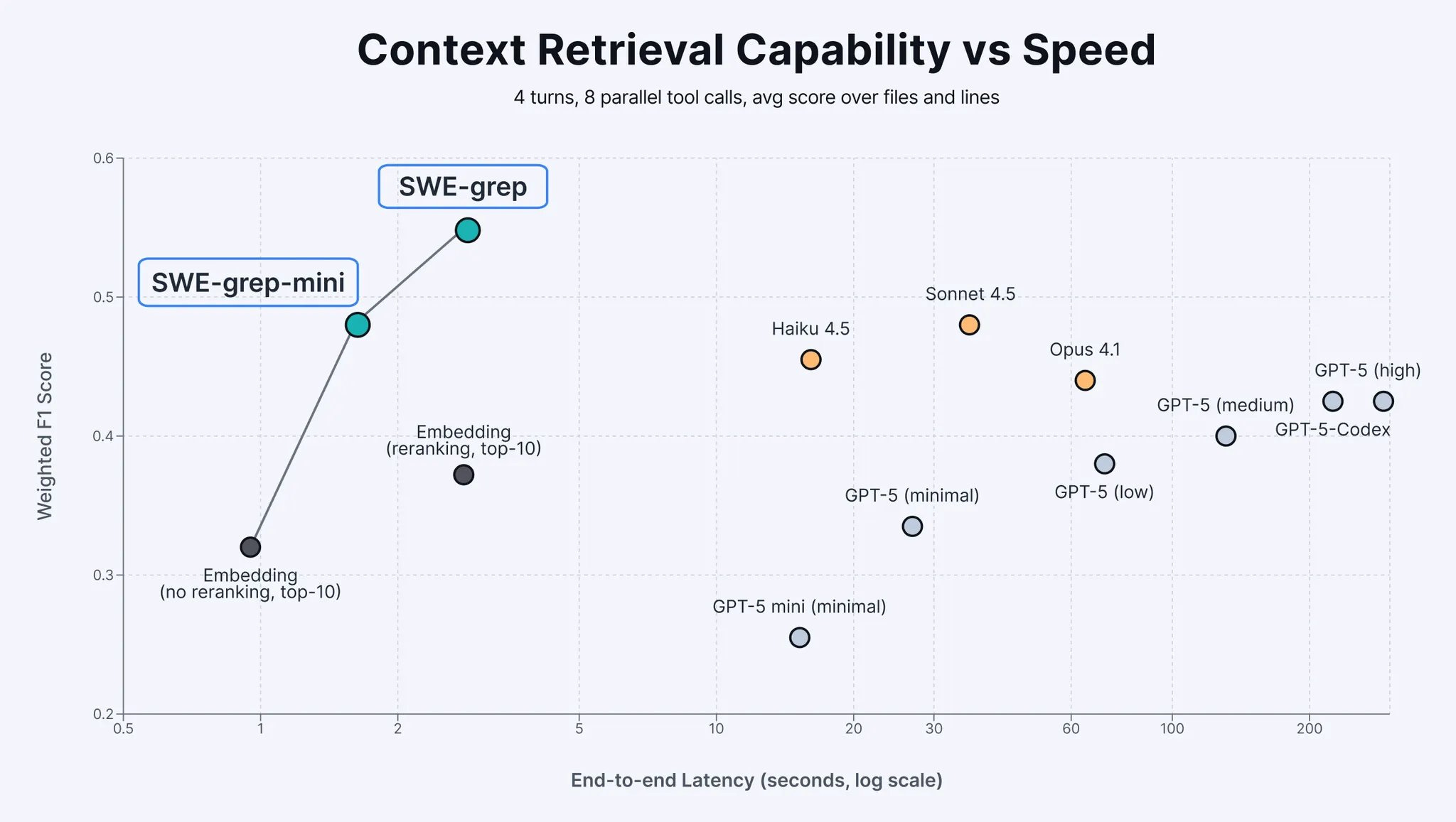 Cognition has trained two new models, SWE-grep and SWE-grep-mini, to search a codebase for relevant context to answer a question. These models are way faster than LLMs and have better performance. These are available in Windsurf as a “Fast Context” subagent that triggers automatically.