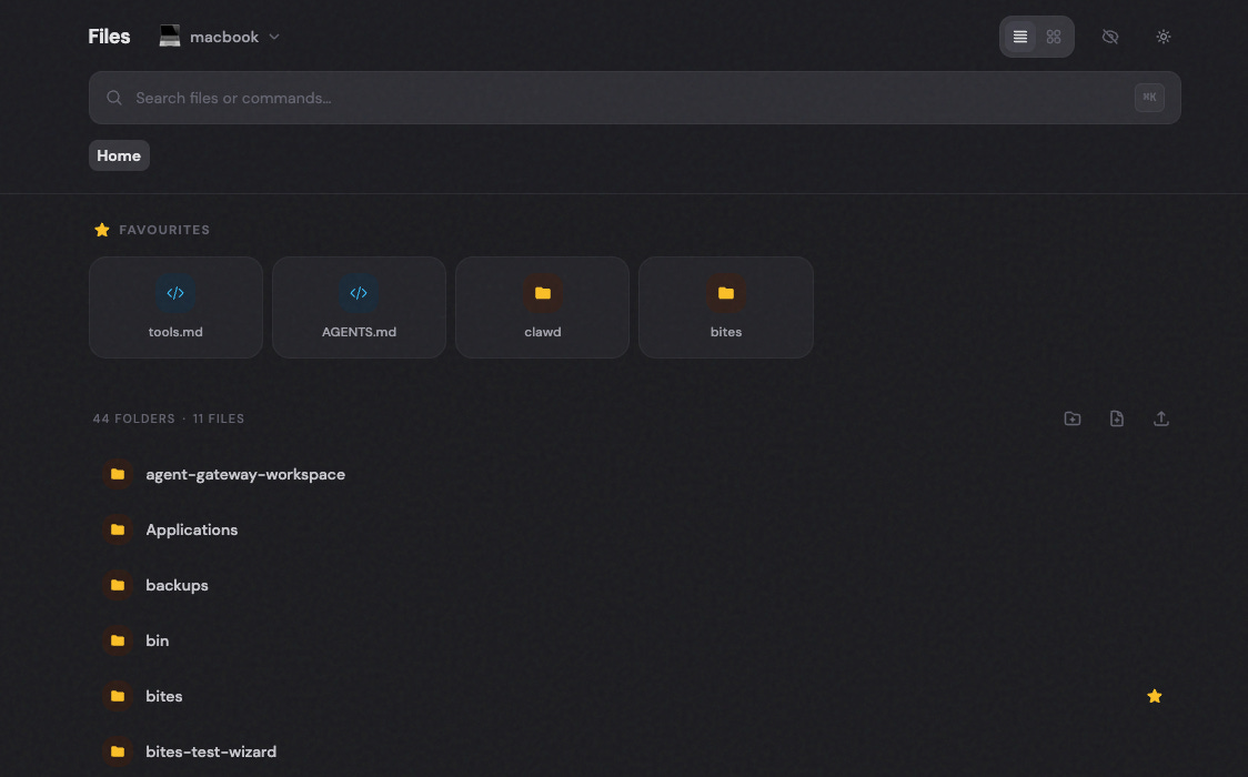 I built something small that I needed…with all this clawdbot/openclaw mania I found it really hard to ‘see’ files on my remote computer (mac-mini/vps/etc). So I built a combined file-explorer app - you can upload/read/edit files on any machine (local or remote) you connect to it. Its free to clone/remix.