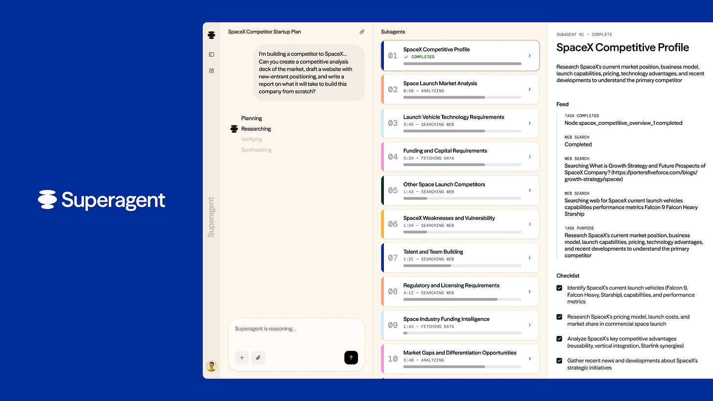 Stop talking to walls of predictive text and start doing real research with Superagent. Give it a question, and it gets to work: Subagents deeply interrogate your topic, scour a wide range of credible sources, and package it all up into boardroom-ready reports, slides, docs, or websites.*